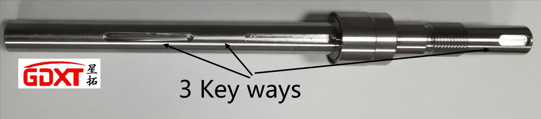 Biggest diameter 18.00mm, smallest diameter 10.00mm, length 210.00mm, three key ways.